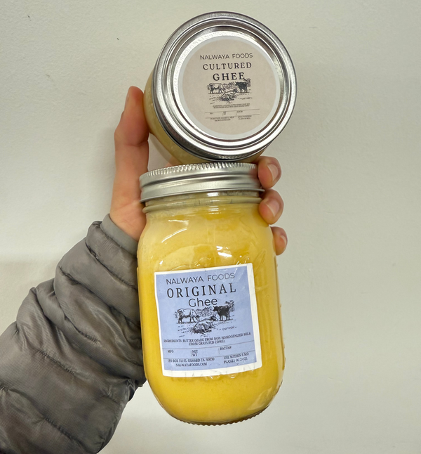 Original Ghee is made from butter sourced from grass-grazed, pasture-raised cows on regenerative farms. Using traditional methods, we slowly simmer organic butter to remove milk solids, creating a lactose-free, casein-free, shelf-stable ghee with a rich flavor and golden color.